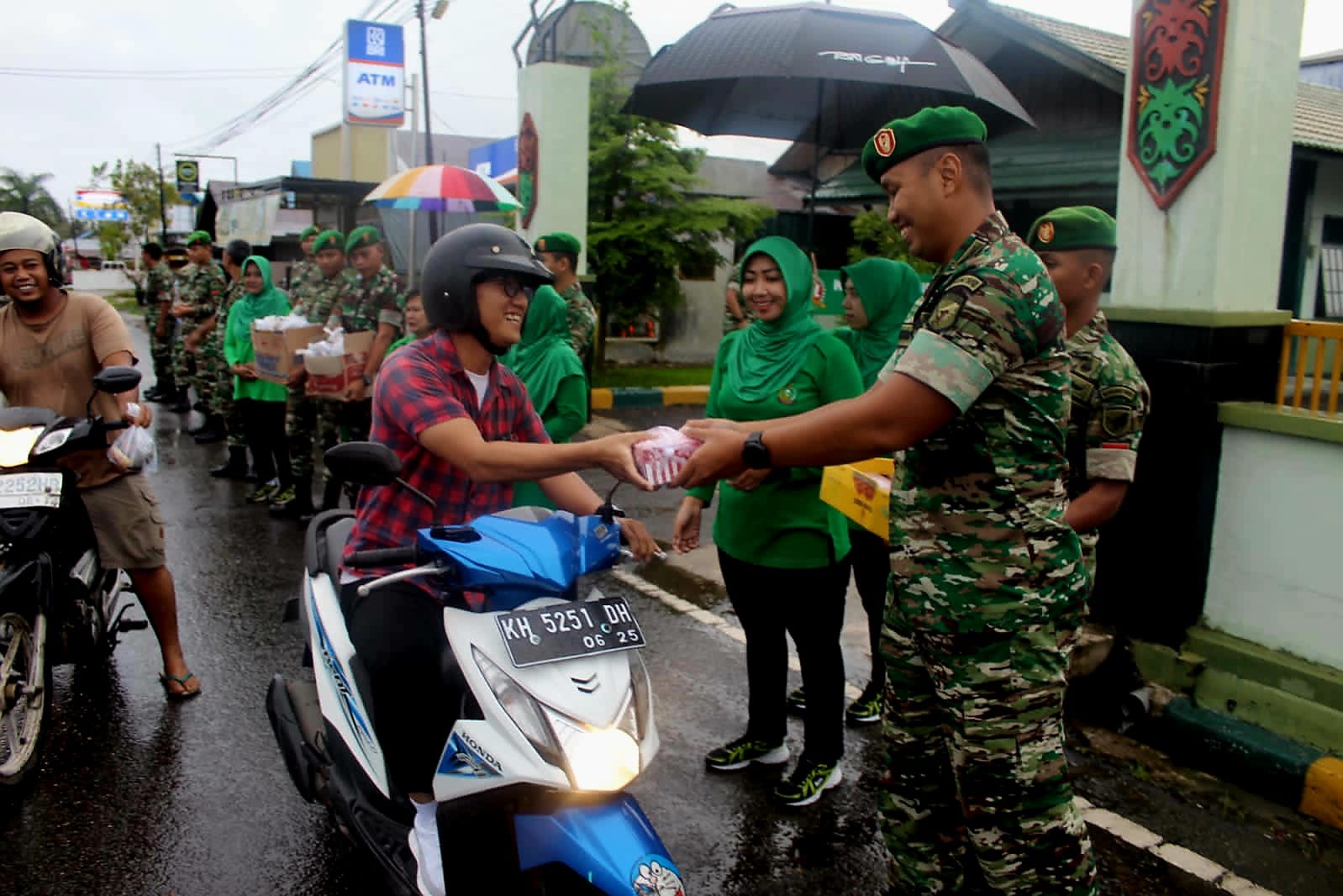 Pembagian takjil dipimpin Komandan Kodim 1012/Buntok Letkol Inf Hendro Wicaksono, personel jajaran Kodim 1012/Buntok dan Persit KCK Cabang XXXVII DIM 1012 Koorcab Rem 102 PD XII/Tanjungpura.