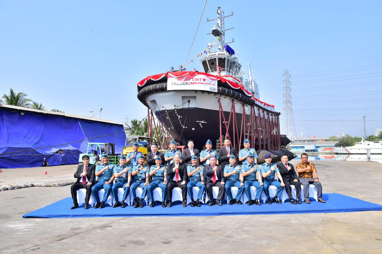 Jakarta, indomaritim.com – TNI Angkatan Laut kembali melaksanakan Shipnaming dan Launching satu Kapal Harbour Tug yaitu H-405 dipimpin oleh Asisten Logistik Kepala Staf Angkatan Laut (Aslog Kasal), Laksamana Muda TNI Agus Santoso, di galangan kapal PT. Noahtu Shipyard, Tanjung Priok, Selasa (03/10/2023). Sebelumnya, TNI AL telah melaksanakan delivery 2 Kapal jenis Harbour Tug dengan memanfaatkan Industri Dalam Negeri yaitu PT. Noahtu Shipyard, Agustus 2023.