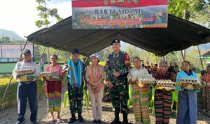 “Kami ikut mendukung pembangunan gereja yang ada di perbatasan guna menambah fasilitas di gereja. Ini merupakan upaya kami sebagai mitra yang peduli dan berperan aktif dalam pembangunan untuk masyarakat.” ungkap Serda Novardiansyah. (WL).