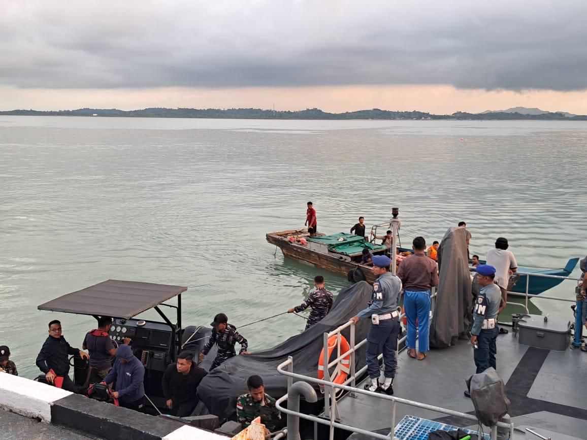 Keempat pelaku beserta sejumlah barang bukti dibawa menuju Dermaga Lanal TBK untuk melaksanakan penyidikan dan proses hukum lebih lanjut. (SY).