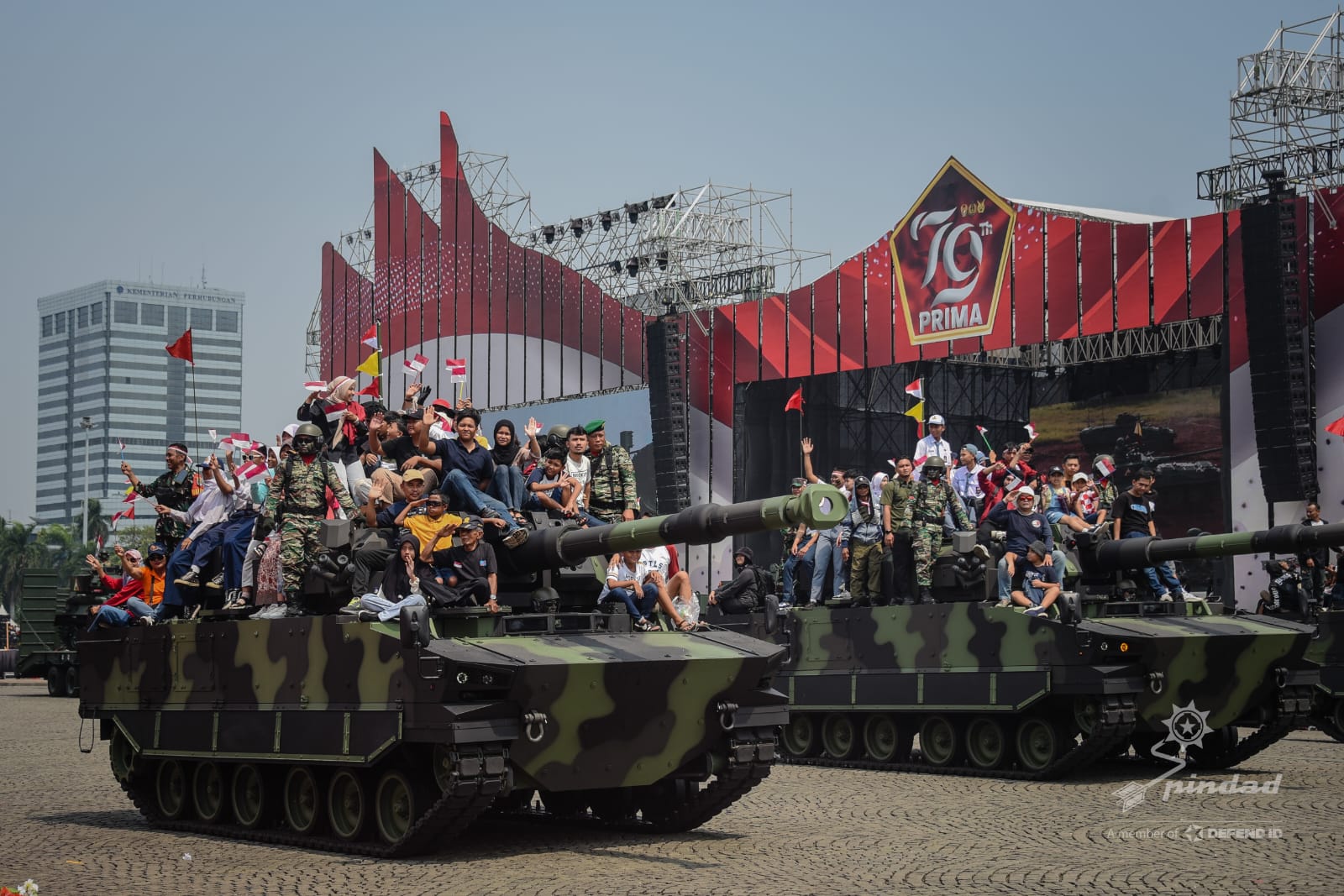 Jakarta, Indomaritim.com – Kendaraan Tempur (Ranpur), Kendaraan Taktis (Rantis), Kendaraan Operasional (Ranops) dan senjata produksi PT Pindad ikut serta meramaikan defile dan demonstrasi alpalhankam pada puncak peringatan HUT ke-79 TNI yang diselenggarakan pada sabtu, 5 Oktober 2024 di Silang Monas, Jakarta. Presiden Republik Indonesia, Joko Widodo memimpin upacara HUT ke-79 TNI yang dihadiri oleh Wakil Presiden RI KH Ma’ruf Amin, Panglima TNI Jenderal TNI Agus Subiyanto, Kasad Jenderal TNI Maruli Simanjuntak, Kasal Laksamana TNI Muhammad Ali dan Kasau Marsekal Mohamad Tonny Harjono. Kegiatan ini juga turut dihadiri oleh Menteri Pertahanan RI Prabowo Subianto, Kapolri Jenderal Listyo Sigit, jajaran Menteri, jajaran Direksi dan Komisaris PT Pindad, perwira tinggi TNI dan pejabat lainnya.