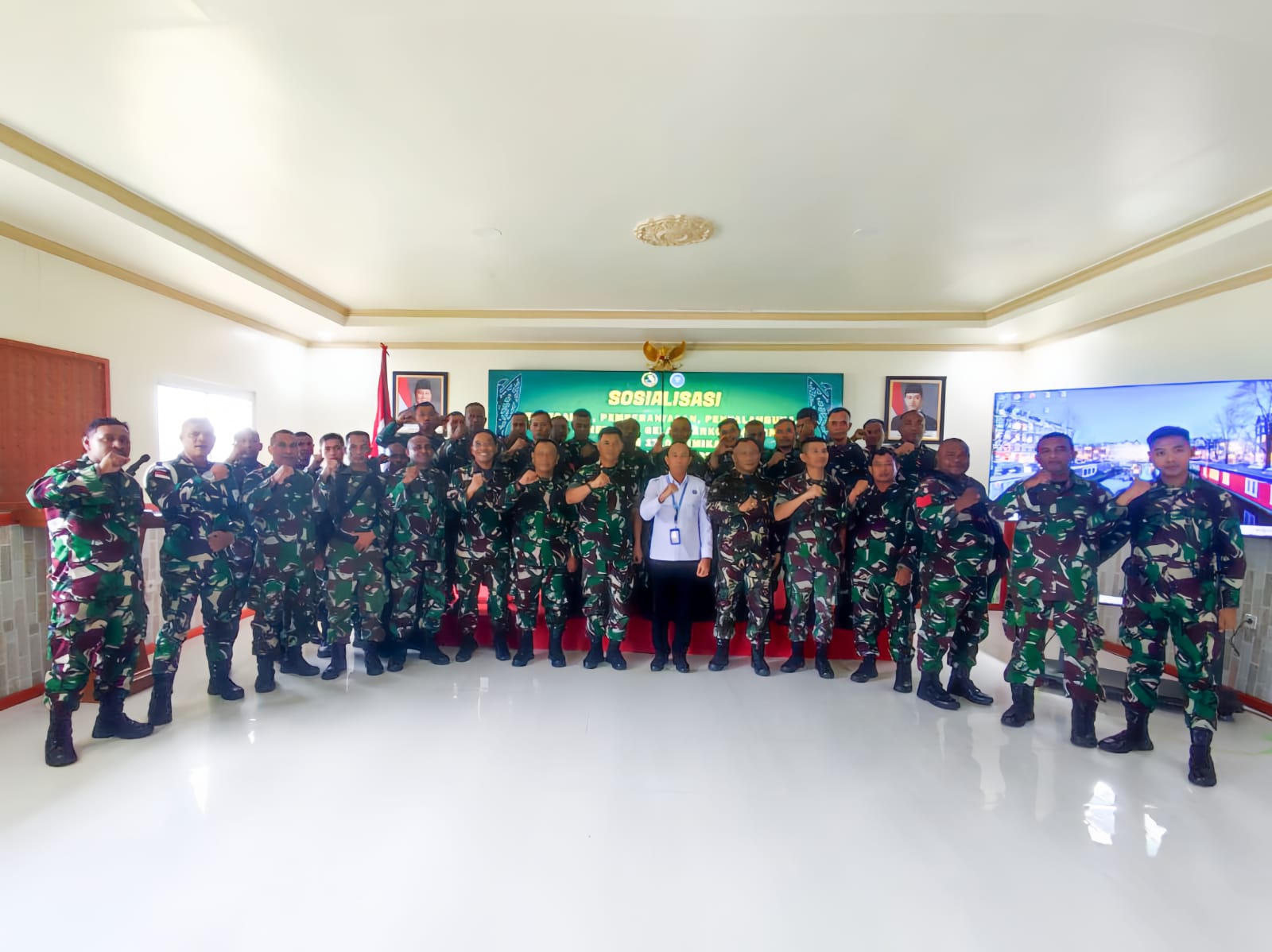 Kegiatan ini bertujuan untuk memberikan pemahaman, menumbuhkan kesadaran, serta memperkuat komitmen seluruh personel dalam menghadapi bahaya narkoba. Melalui sosialisasi ini, diharapkan setiap prajurit dan PNS mampu menjaga diri, keluarga, dan lingkungan dari ancaman narkoba, sekaligus menjadi agen penyebar informasi dalam memerangi peredaran gelap narkoba di masyarakat. (WLM).