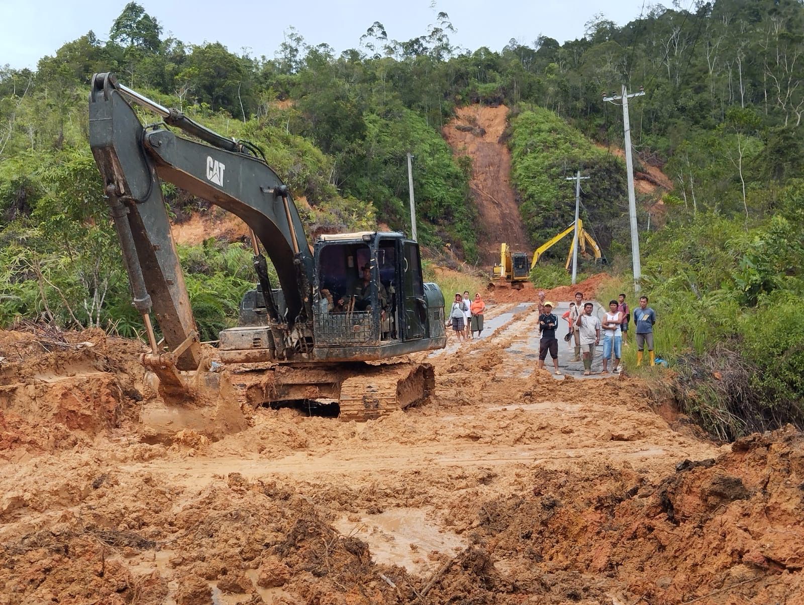 Satgas tersebut kembali mengerahkan alat berat untuk membuka akses jalan yang tertutup longsor di Desa Sigarupu, Kecamatan Sitahuis.