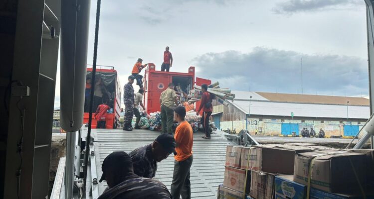 KRI Semarang-594 TNI AL Debarkasi Bantuan Kemanusiaan Bagi Korban Terdampak Bencana Banjir